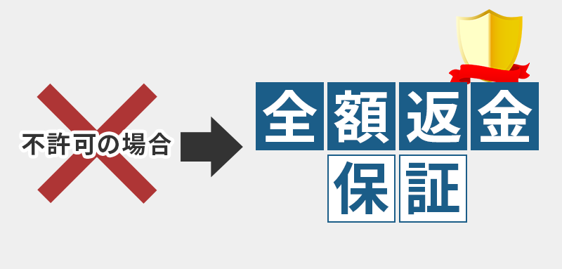 万が一不許可でも無料にて再申請をサポート。最終的に不許可の場合は全額返金致します。