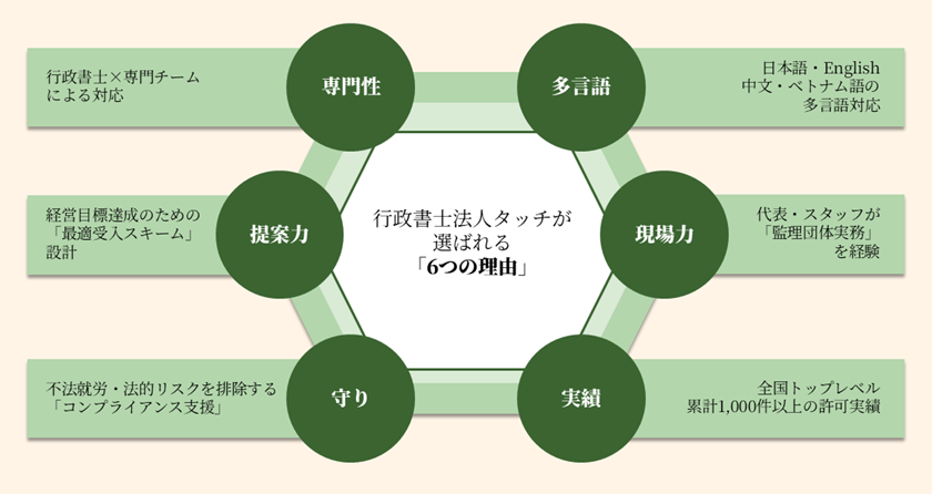 これらの課題を、行政書士法人タッチの「専門性」と「組織力」が一気に解決します。